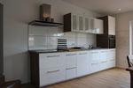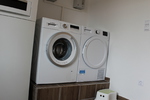 Eigen Waschmaschine und Trockner, Induktionskochfeld und ein großer Kühlschrank.
